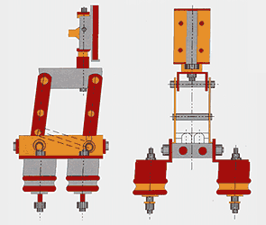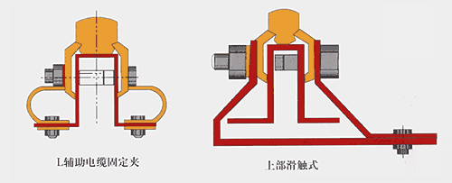 七、低阻抗滑觸線 近代工業(yè)中,起重機(jī)噸位日益增大,運(yùn)行距離也愈來愈長,如何處理滑觸線上的電壓降不超過允許值問題,需要設(shè)計(jì)過程中妥善解決。過去解決電壓降過大的方法,不外乎采用:加大滑觸線和供電線路的截面;增加滑觸線上的供電點(diǎn)數(shù);縮小三根滑觸線之間的相間距離等等,但這些措施往往收效甚微或很不經(jīng)濟(jì),這是因?yàn)榛|線路中的電抗值難以降低,所以首先要解決如何減少滑觸線路上的電抗值著手。本廠同有關(guān)設(shè)計(jì)單位一起,研究國外資料,在剛體滑觸線上的基礎(chǔ)上,添加兩根輔助電纜,組成低阻抗滑觸線后,可使線路阻抗值成倍地降低(根據(jù)不同規(guī)格的剛體添加不同截面的電纜后,其阻抗值可以降低到原來的1/2-1/3)下面為低阻抗滑觸線的簡要配置圖: