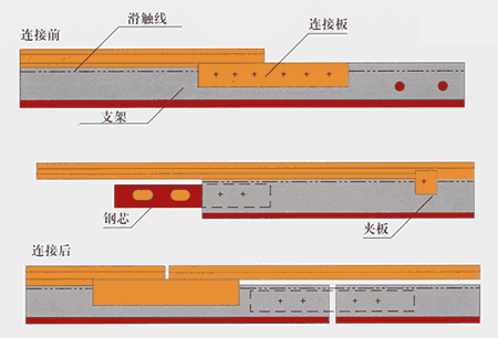 四、鋼體滑觸線的連接 滑觸線的連接如下圖所示: